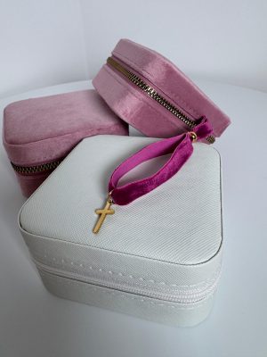 Pulsera terciopelo morada cruz